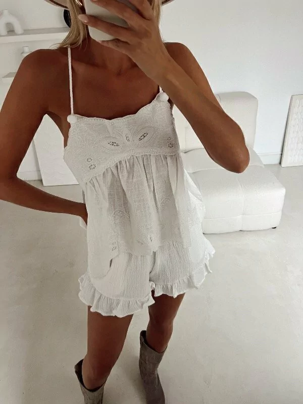 MUSCULOSA 100% ALGODÓN. TIRANTES TRENZADOS. DETALLES DE BRODERIE.